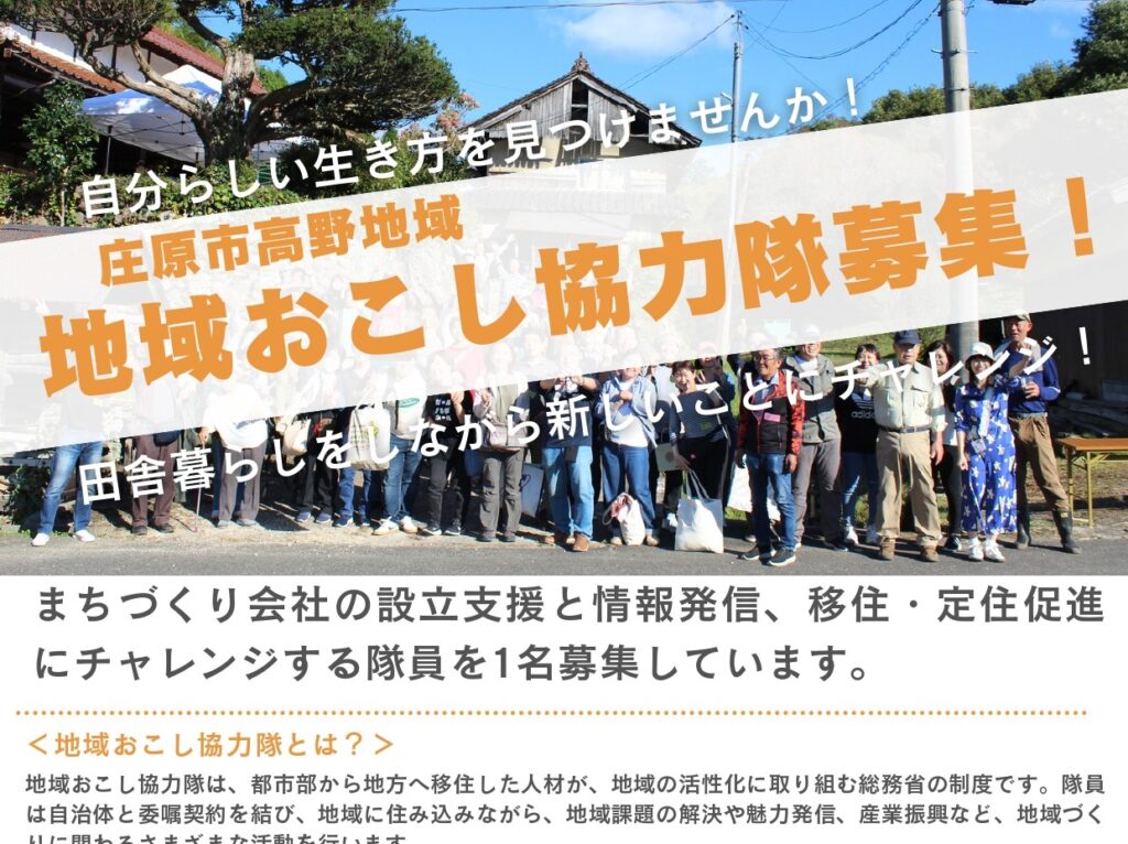 こんにちは、地域おこし協力隊の佐々木です。庄原市高野地域では、令和8年度の地域おこし協力隊を募集しています。地域おこし協力隊にご興味をお持ちの方がいらっしゃいましたら、ぜひご応募ください!