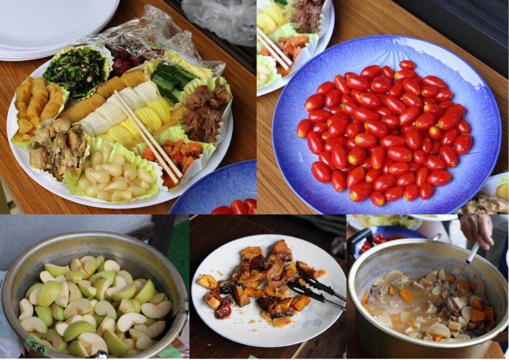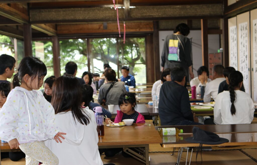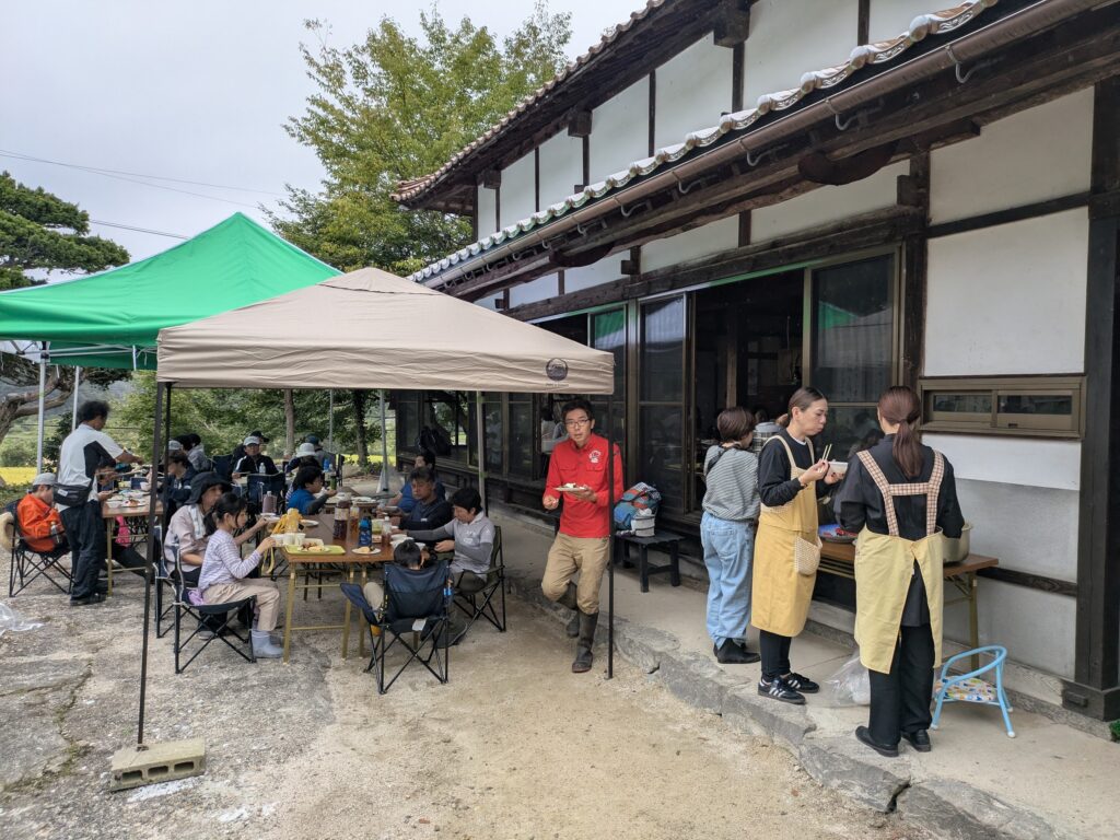 昼食は僕の家である田んぼ横の古民家でいただきました。庭先に並べたテーブルや大広間で田舎の風情を感じながら楽しんでいただきました。